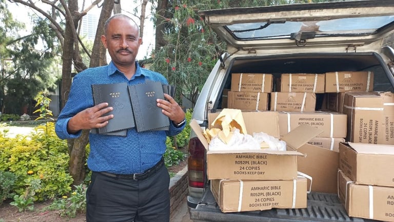 Es gibt Orte, an denen die Bibel in der Landessprache immer noch nicht erhältlich ist, weil sie ein Vermögen kostet (ca. € 8.60) und die Menschen davon träumen, mindestens eine Bibel für ihre Familie zu haben, sie sich aber nicht leisten können. Dazu gehören beispielsweise ländliche Regionen in Äthiopien, Kenia und Sudan, in denen statt Bargeld Waren gehandelt werden, z. B. Eier gegen Milch. Es kommt so weit, dass in Kirchen mit z.B. 200 Gläubigen durchschnittlich 1-2 Bibeln vorhanden sind. Für uns ist es nicht viel, aber für sie ist es eine riesige Menge. Wie viel brauchen Sie jetzt?